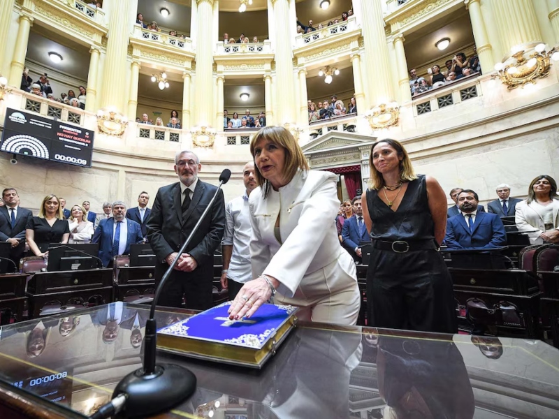 Al término de las juras, Patricia Bullrich se acercó a Victoria Villarruel para manifestarle algo vinculado a la sesión. pic.twitter.com/v90MenAiV5